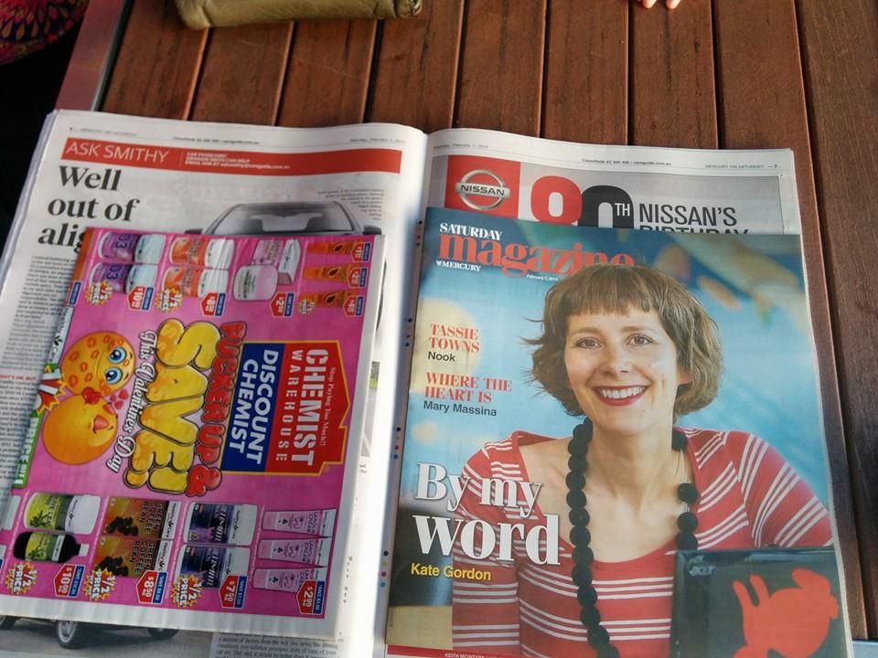 But for this aspiring chronicler of events, these happenings were not the only notable occurrence to be had. In a joyous coincidence and for me a matter of immense pride, that very weekend my adored daughter graced the local daily as the feature article of its weekend supplement. Her lovely face appeared on the cover, with, on the inside, more images to savour of her little family – hubby Leigh and the mini-wonder that is Tessa Tiger. Tim Martain did a great job of wordsmithery in tracing my daughter’s progress from her upbringing in provincial Wynyard to finally calling Hobs home; in recounting her previous literary publications and flagging her upcoming one – ‘Writing Clementine’. All of it was pure unadulterated bliss for a proud father to peruse.