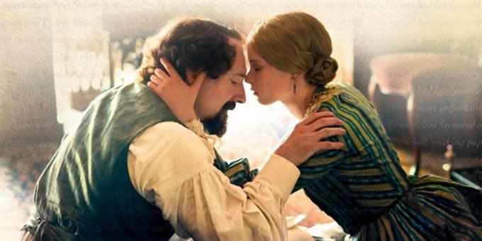 Dickens has been described as eccentric by some reviewing this offering, but in truth I didn’t come away from this film having acquired that impression. He was perhaps somewhat exuberant on occasions, eagerly seeking diversions from a stultifying marriage in a time of societal stultification. He hung out with the racy Wilkie Collins, played with relish by ‘The Rev’s’ Tom Hollander. His mate led the way in pushing the envelope against the morality of the times, something the great man couldn’t quite bring himself to do to the same extent. But that wasn’t going to stop him following his heart – embracing, rather than suppressing, his infatuations – the latter being what was meant to occur. Dickens goes to great trouble to conceal this particular affair as he was a married man in the spotlight. He was the celebrity of the mid-Victorian period, performing in print and voice to a rapturous world. He felt he couldn’t afford to offend the punters in the manner of Collins, who openly lived in sin and bugger the consequences. When he was bowled over, skittled, by Ellen Ternan, a struggling actress, from a family of thespians, barely past the age of consent, he was well out of love with his lumpen wife, stolidly played by Joanna Scanlan, She was dour, exhausted from producing ten progeny and her husband’s oft unfeeling demands. There is, in reality, roughly the same age gap between Fiennes and Jones, enhancing its reality. Look at the image of Ternan – she was something, even by today’s standards and Jones captures her perfectly. The interesting role was that of Ellen’s mother, played by veteran Kristin Scott Thomas. She knew well her youngest daughter’s lack of acumen for the stage. She was savvy and forward thinking enough to see that a liaison with Dickens might allow Ellen to make her way in the world. There was no ulterior motive – just a concern for her daughter’s well-being.