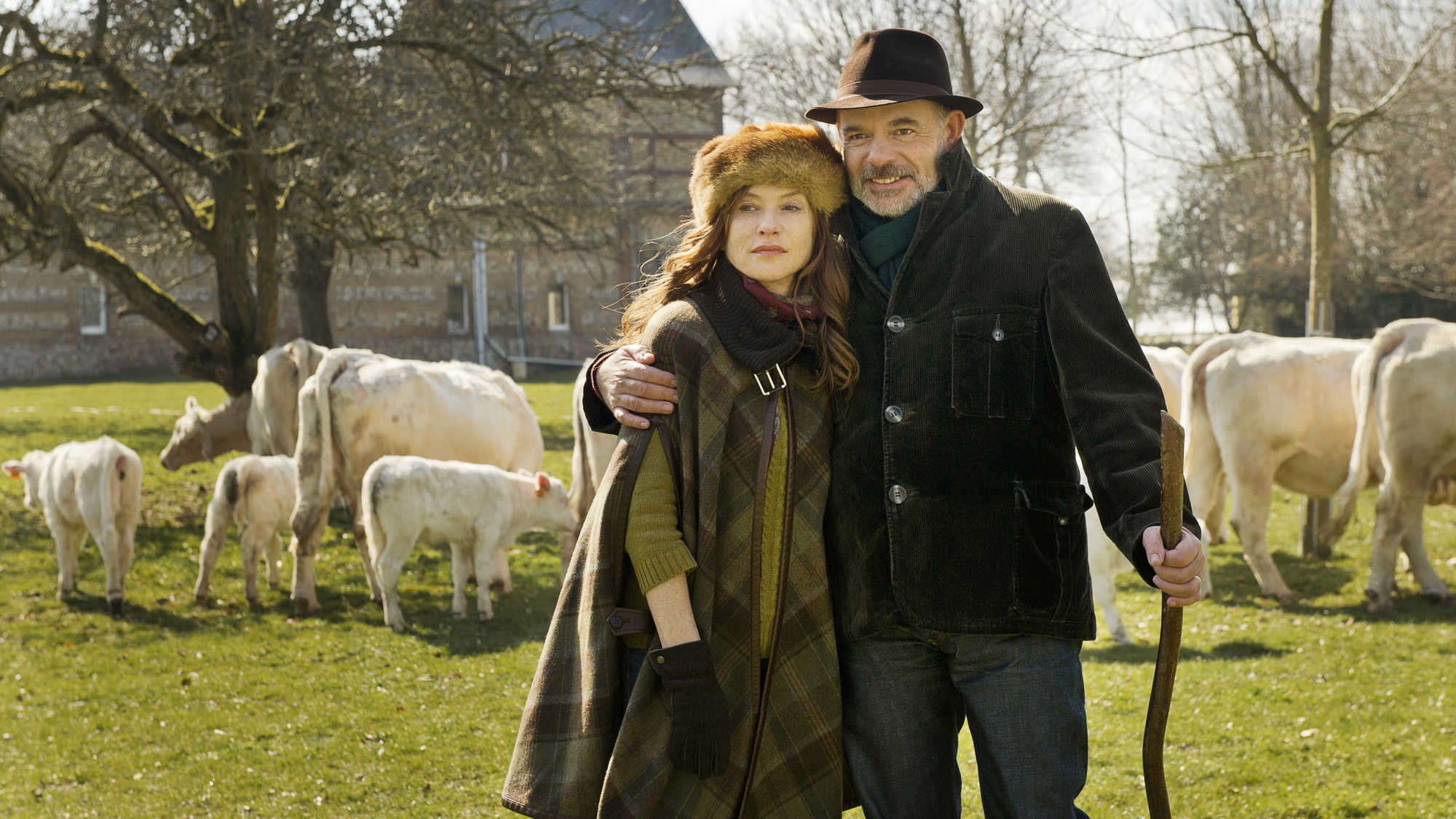 There is an old adage that an affair can have a positive impact on a marriage – refresh it, liven it up. I suspect that in at least ninety-five percent of cases that is not the case, but Brigitte (Huppert) is bored, in a rural rut. Hubby Xavier (a fine, nuanced performance from Jean-Pierre Darroussin) is about to discover if that old saying it true for his stale relationship. These long term marrieds run a stud for those exquisitely hefty bovines, the charolais, in the French countryside. He is your typical ‘hide your feelings at all costs’ rustic. But Brigitte stands out with her millinery, as well as being, at around the fifty mark, still a beauty, a head turner – except for that pesky skin complaint on her chest that simply will not go away no matter how many exotic unguents she applies. She meets a younger slick city type at at local party she is cajoled to attend, with the result that horizons suddenly expand. Can he be the catalyst to lift her out of that rut? Using the treatment of her eczema as her excuse, Brigitte becomes cougar. She heads for the City of Light to track down her quarry in his own environment. When that does not exactly go to plan, she substitutes a Danish dentist (Michael Nyquist of ‘As It Is In Heaven’ and ‘Dragon Tattoo’ fame).