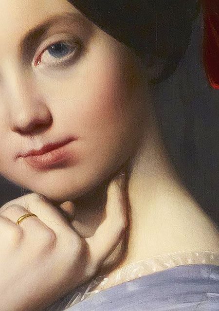 And as for the painting itself – well neo-classicist Ingres (1780-1867) was a perfectionist and prepared with numerous sketches of the lady before he committed to canvas. Even so, the great man considered this to be a side-project and kept interrupting its completion to attend to what he considered greater works. This was not aided by Louise’s travels combined with, to Ingres, an unfortunate pregnancy. The artist completed his first sketch for it in 1842 when the sitter was just 24. The whole shebang was not completed till three years later. It was immediately a hit with Louise’s family and her set – it is now regarded as one of the master’s masterpieces. If one reads the art-wank, the pose can be traced back to Roman times with ‘…the chin supported by the hand, the gaze that looks not so much at us but through us (so much for my come-hither assertion), the look of a privileged and uninterrupted abstraction.’ (John Russell, New York Times)